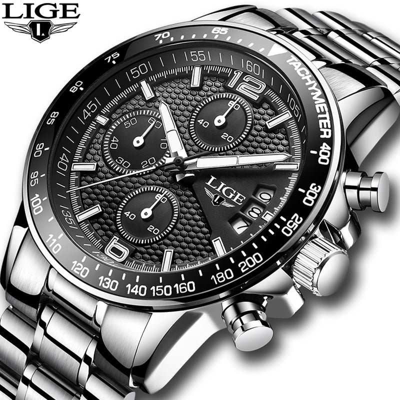 Feature: Auto Date,Complete Calendar,Shock Resistant,Luminous Hands,Water Resistant,Stop Watch,Chronograph,Swim